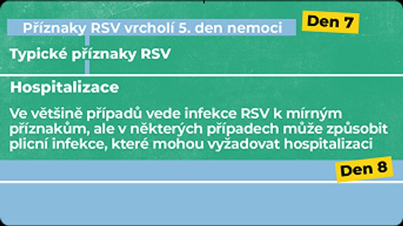 Upozornění: Jedná se o ilustraci typického průběhu onemocnění RSV, časový průběh a příznaky se ale mohou individuálně lišit.