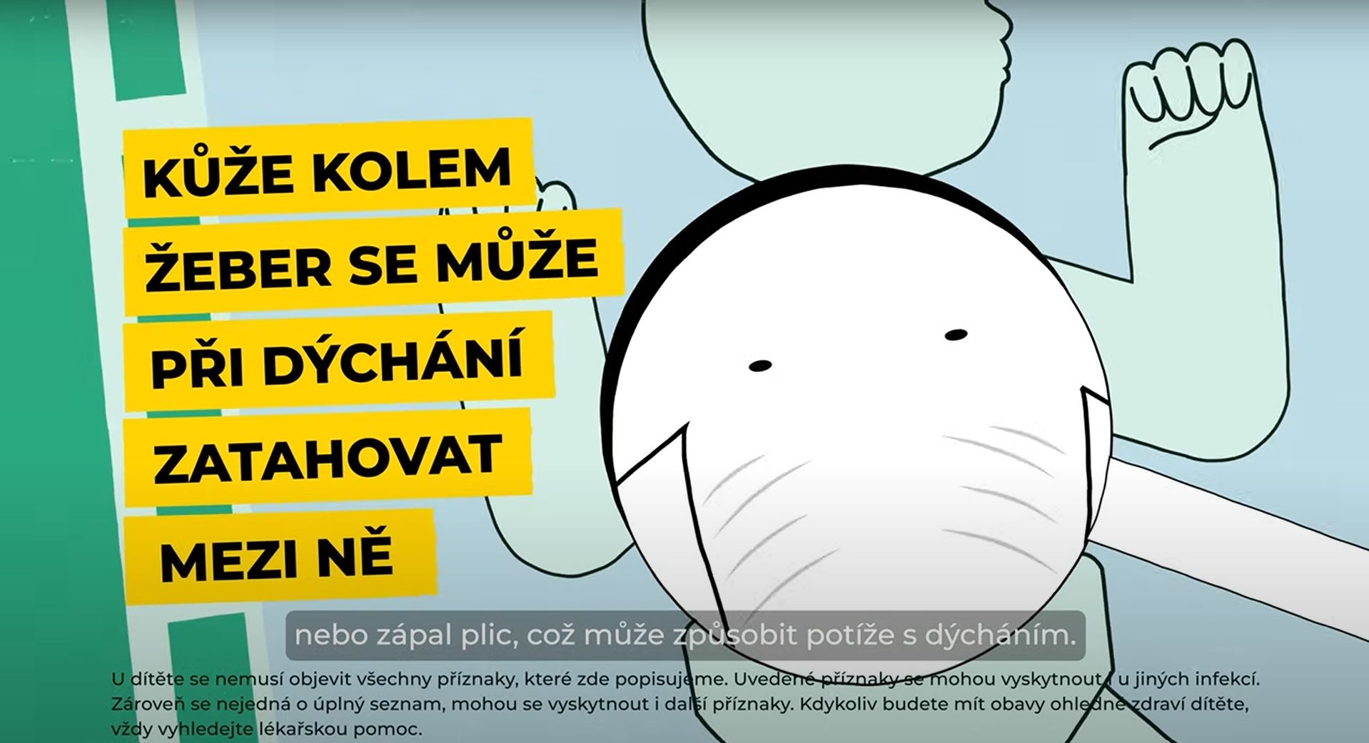 Zvukové efekty jsou pouze ilustrační. Příznaky mohou být různé a u malých dětí může existovat celá řada potenciálních příčin respiračních příznaků. Pokud u vás bude dýchání dítěte vyvolávat obavy, vždy vyhledejte lékařskou pomoc.