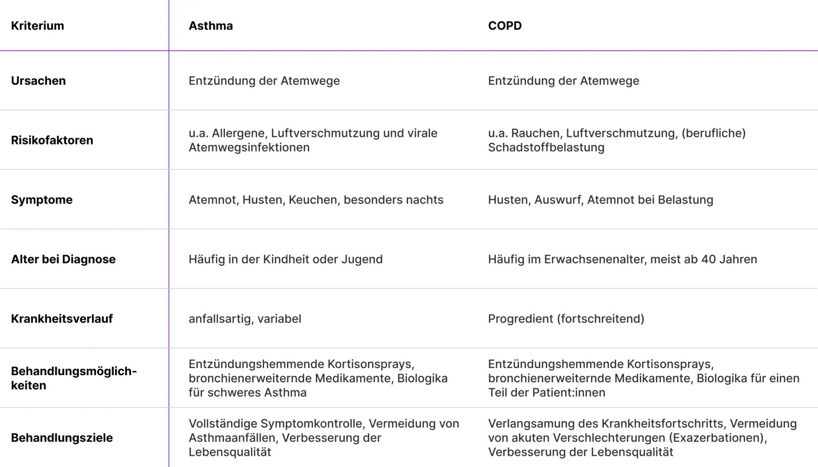 Was sind Gemeinsamkeiten und Unterschiede zwischen Asthma und COPD?