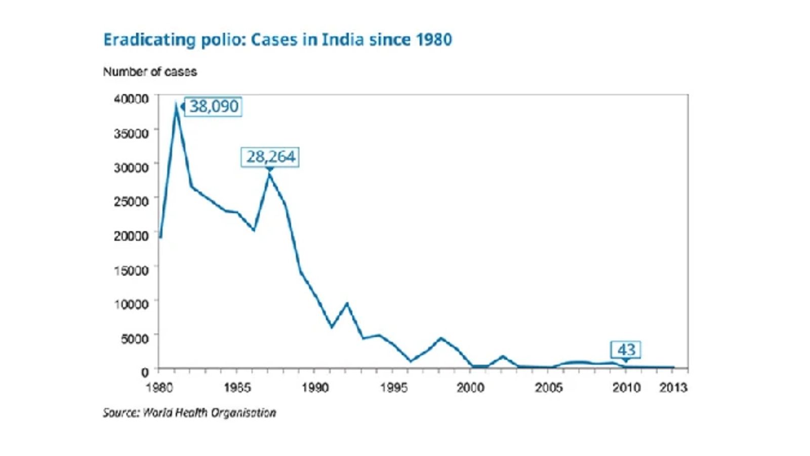 In 2012, Polio remained officially endemic in four countries: Afghanistan, Nigeria, Pakistan and India. India was the biggest of the four remaining polio endemic countries, and was presumed to prove most challenging in the effort to eradicate polio globally. However, in 2014, thanks to the concerted efforts of the government and various organizations, India was officially declared polio-free after recording no case since January 2011.