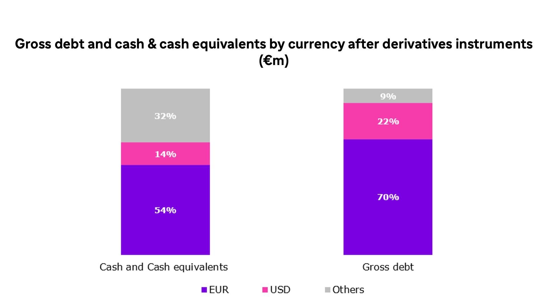 December 31, 2024: net debt of €8,772 million (gross debt of €16,137 million after derivatives minus cash and cash equivalent of €7,365 million after derivatives)