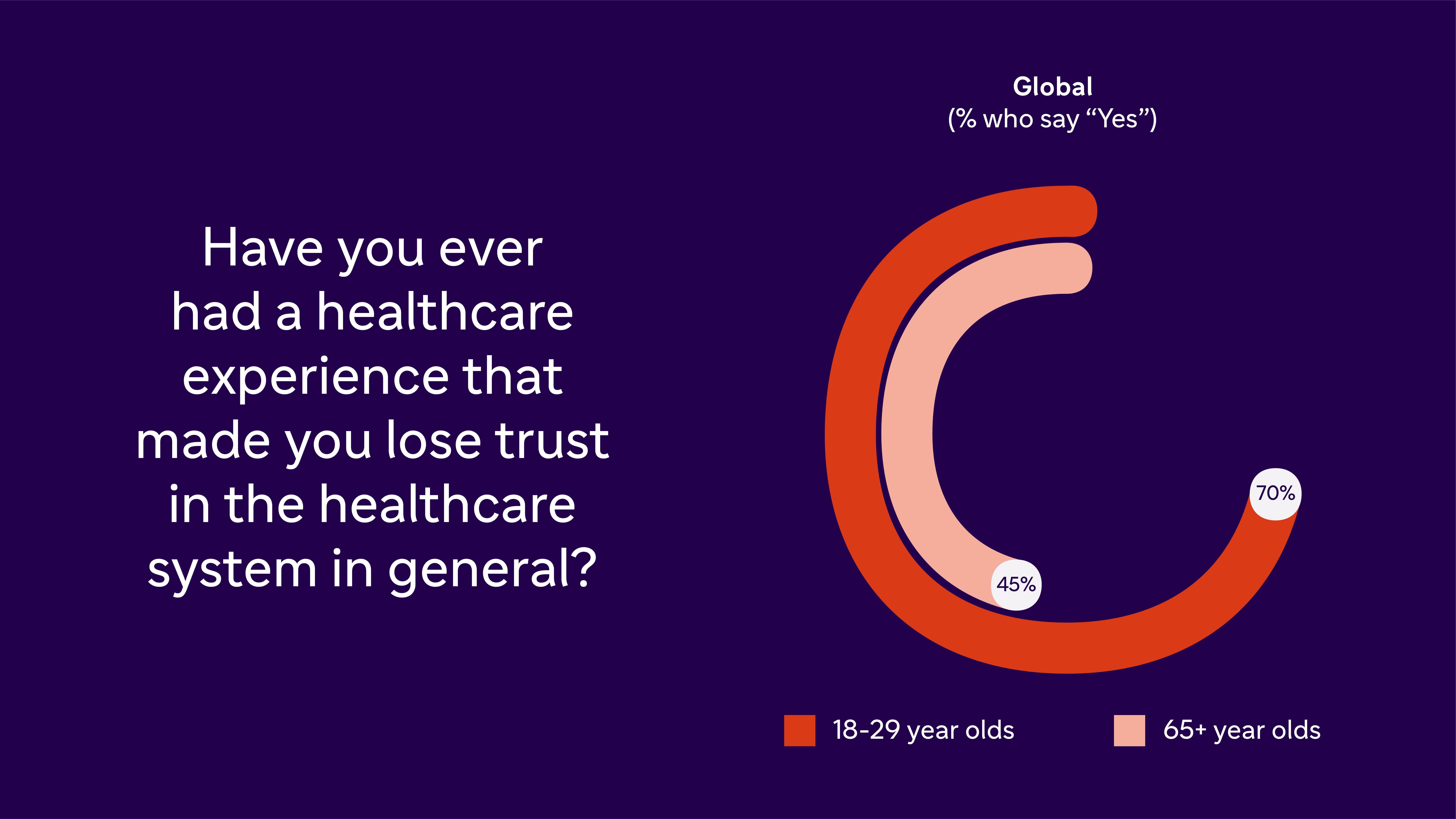 This is a crucial step to drive much needed change. Our global survey exposed a healthcare trust deficit, which has the danger of growing in severity. We found that only 77% of young adults (18-29) trust information from their doctors, in contrast to 91% of those aged 65+. Indeed young adults are also more likely to have lost trust due to past negative experiences - 70% compared to 45% aged 65+.