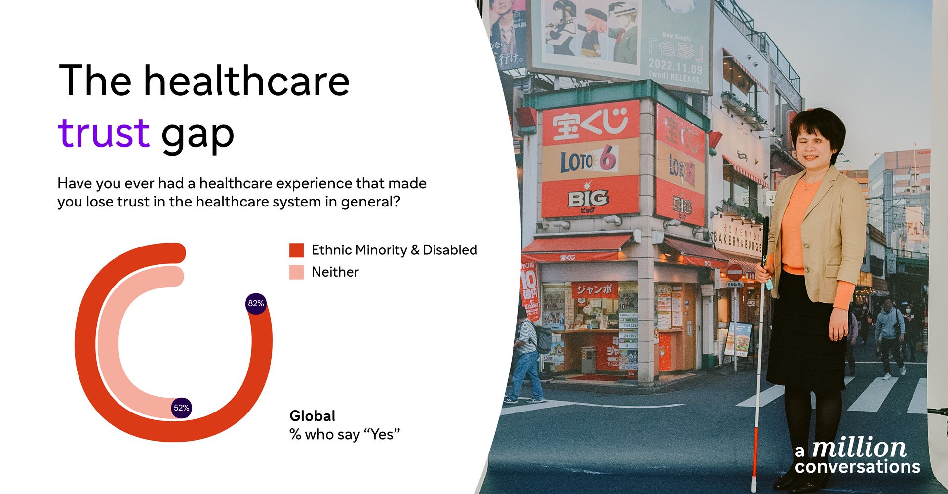 - Perhaps most worrying of all was that people with disabilities, a group who fundamentally rely on healthcare, expressed the largest trust gap compared to non-disabled people (73% vs 56%).