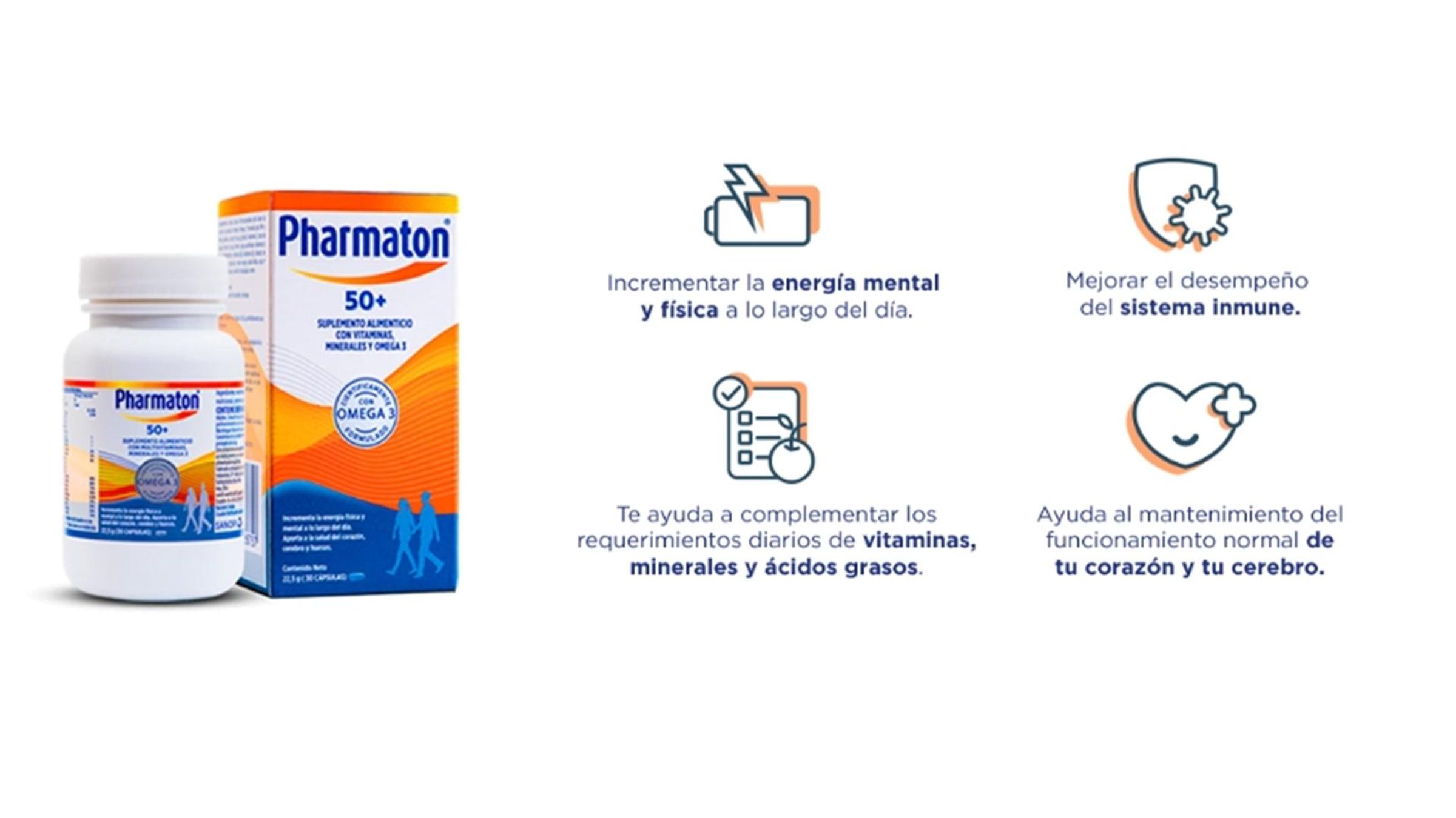 Pharmaton® 50+ con Omega-3, multivitaminas para estar enfocado y con energía todo el día.
