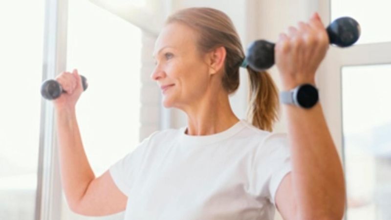 Realiza ejercicios de fortalecimiento muscular, puedes comenzar por levantar un kilo de arroz con cada brazo, o subir y bajar un escalón.