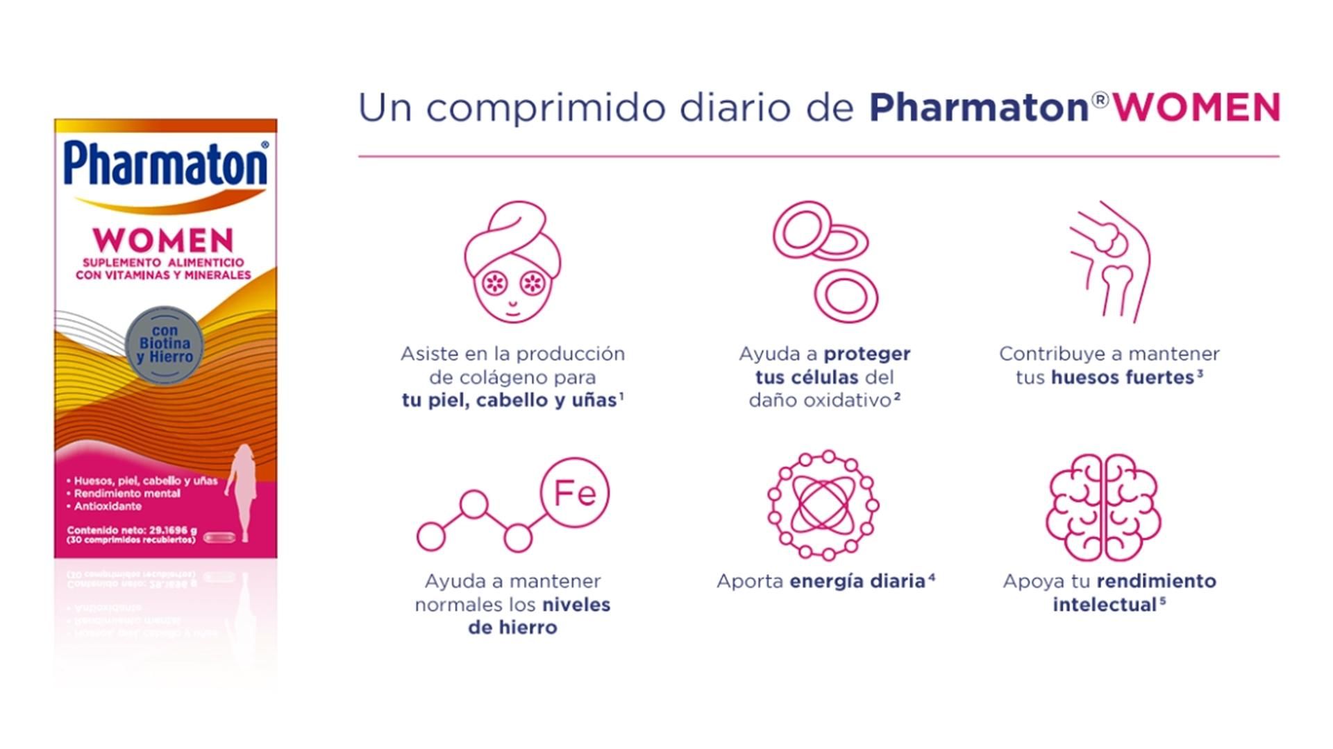 - Pharmaton® Women un suplemento dietario, no es un medicamento y no suple una alimentación equilibrada.
