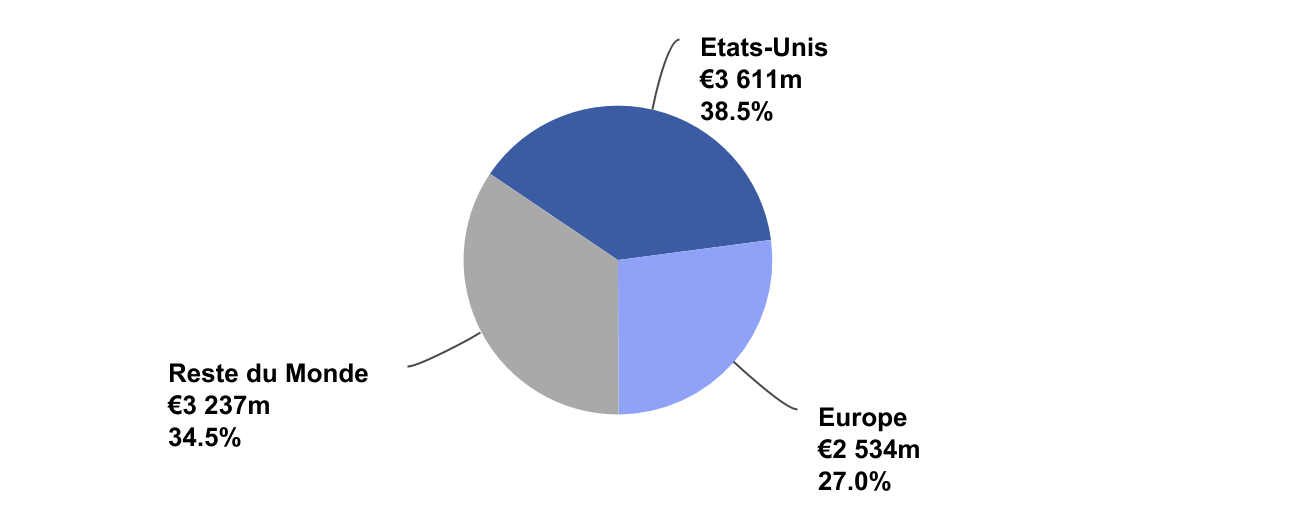 Chiffre d’affaires du T4 2020 par zone géographique (en millions d’euros et en % du chiffre d’affaires total)