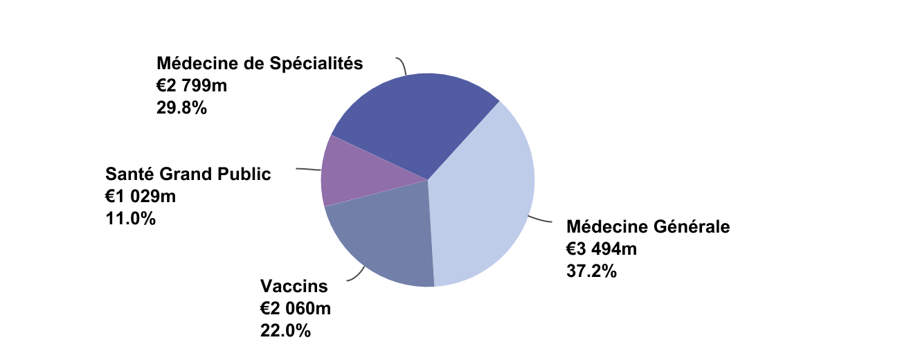 - L’activité Médecine Générale a affiché un recul de 7,5%, reflétant la baisse des ventes du diabète aux États-Unis, la conjoncture liée à la COVID et la simplification du portefeuille.