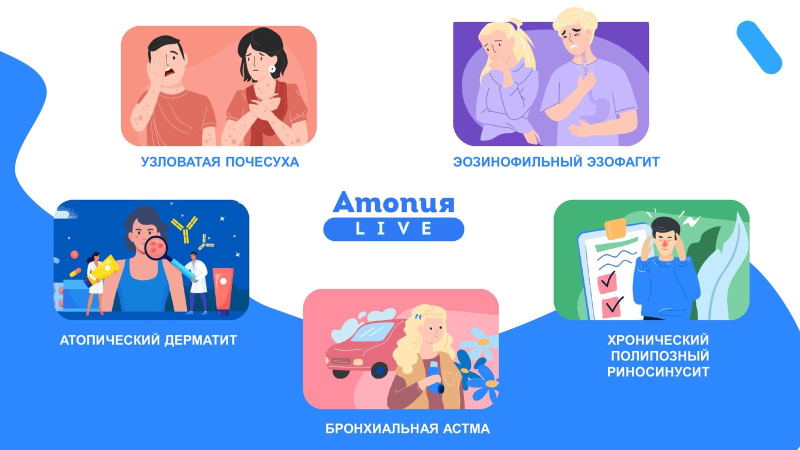 Для пациентов с Т2-ассоциированными заболеваниями, такими как атопический дерматит, бронхиальная астма, полипозный риносинусит, эозинофильный эзофагит, узловатая почесуха и другие, мы в Санофи запустили информационный сайт «Атопия Live».