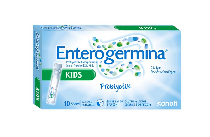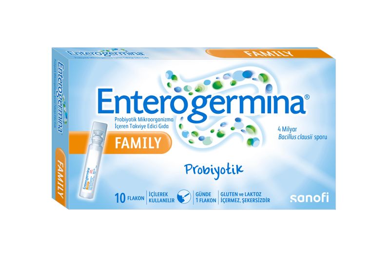 Enterogermina canlı spor içeren bir probiyotiktir. Spor, bakterinin kendisini korumaya almış halidir. Enterogermina'nın içerisindeki Bacillus clausii bakterisi, doğal olarak spor yapma özelliğine sahiptir. Bu sporlar, midedeki asidik ortam bariyerini aşarak bağırsağa ulaşır. Bağırsakta uygun ortamı yakalayarak canlı hale dönüşür ve çoğalmaya başlar (kolonize olur). Ancak bu şekilde faydalı etkilerini gösterebilir. Bacillus clausii sporu ile Enterogermina hem çocuklar hem de yetişkinler için önemli bir takviye edici gıdadır. Tüm ailenin sindirim sistemini düzenlemeye ve bağışıklık sistemini desteklemeye yardımcı olur. Enterogermina’nın spor formunda bakteri içermesi sayesinde buzdolabında saklanması gerekmez, seyahatlerde güvenle taşınıp kullanılabilir, sıcak yiyecek ve içeceklerle birlikte kullanımı etkinliğini azaltmaz. Enterogermina, tatsız, kokusuz ve renksizdir; bu sebeple hem çocuklar hem de yetişkinler tarafından kullanımı oldukça kolaydır.