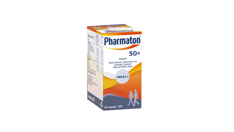 Pharmaton® 50+, Omega-3, 8 Vitamin ve 4 mineral içeren Takviye Edici Gıdadır. Pharmaton® 50+, 50 yaş ve üzerindeki kişilerin günlük besin takviyesi ihtiyaçlarını desteklemek üzere geliştirilmiştir. İçeriğinde bulunan B1, B2, B6, B12, C vitaminleri ve Bakır, Demir ise normal enerji oluşum metabolizmasına katkıda bulunur. Günde 1 Pharmaton®; sabahları tercihen kahvaltıda su ile tüketilmelidir. 50 yaş ve üzeri herkesin günlük kullanımına uygundur.