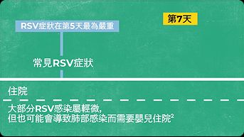 雖然大部分RSV患者病情屬輕微,並會在這段時間內康復2 。但某些嬰兒,症狀可能在感染後幾天內從感冒症狀惡化為嚴重症狀13 。