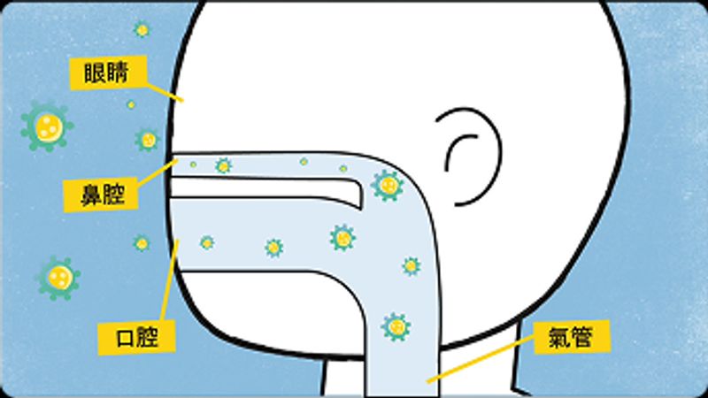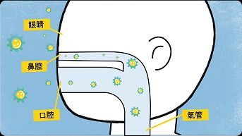 1. RSV病毒經由飛沫進入眼、鼻或口腔。
