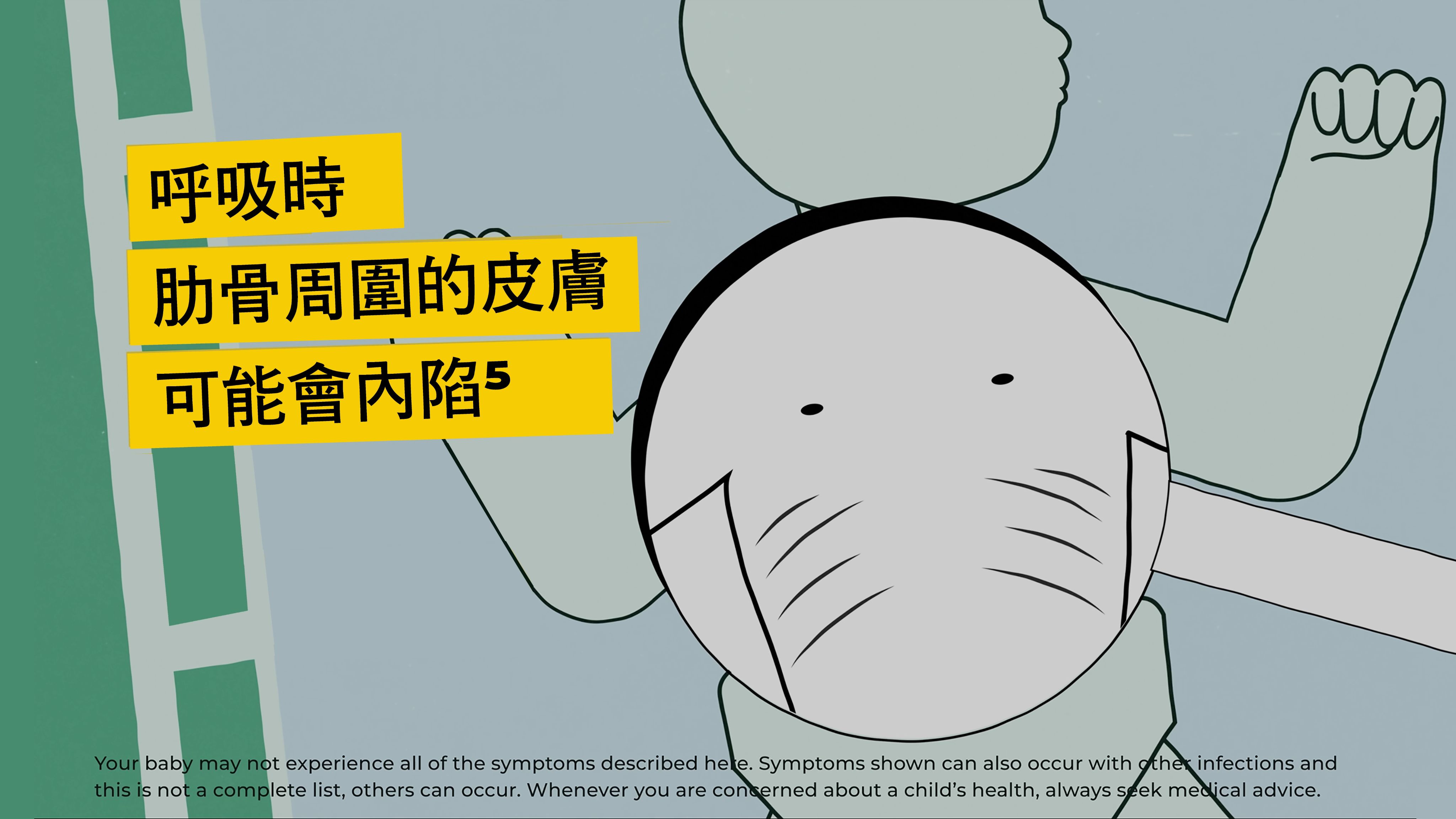 請注意:影片中音效僅供參考。症狀因人而異,嬰幼兒的呼吸道症狀可能由多種因素引起。